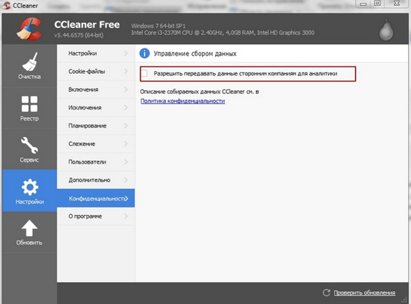 Если раньше для закрытия приложения достаточно было кликнуть по крестику в правом углу, то теперь это действие приводит лишь к сворачиванию утилиты. И что самое неприятное, CCleaner передает собранные сведения сторонним компаниям для аналитики, разумеется, не предупреждая об этом пользователя.