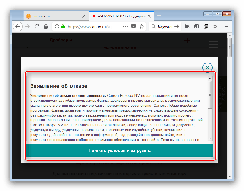 Скачиваем драйвера для Canon LBP6020