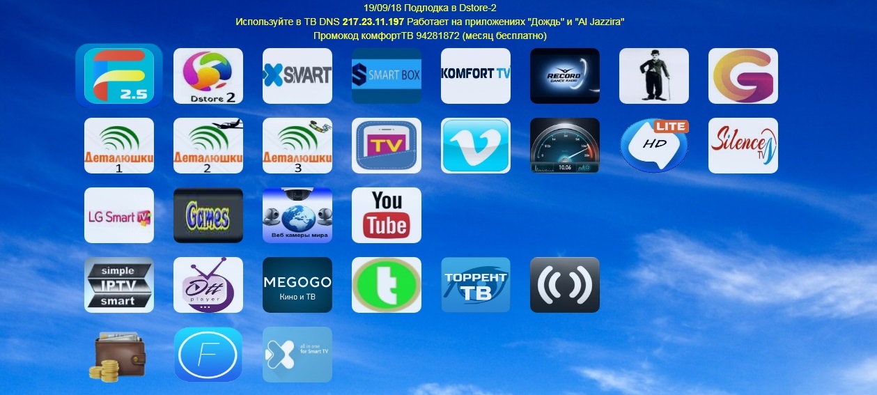 С помощью добавления различных минипрограмм в меню вашего ТВ вы сможете не только находить и просматривать любые фильмы и сериалы, но и активно общаться в соцсетях, следить за погодой или курсом акций на биржах, смотреть и записывать телепрограммы в высоком качестве, а также многое другое.