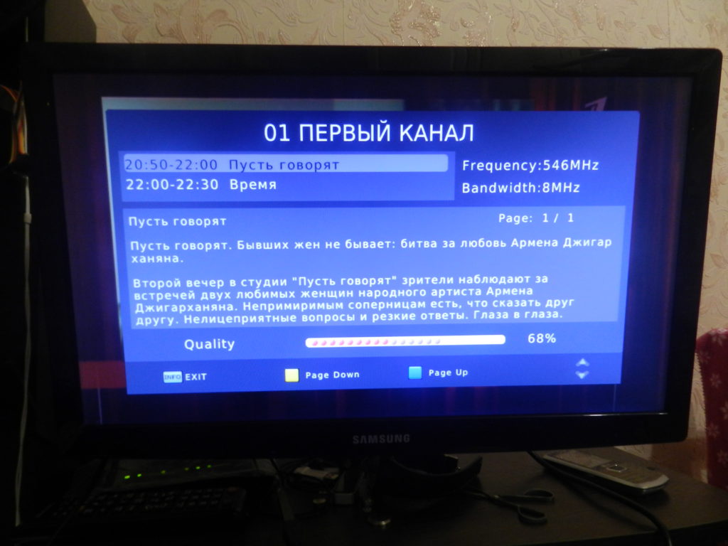 Нажав кнопку «info» на пульте, можно посмотреть что идет и что будет дальше. Если нажать эту кнопку ещё раз, то увидим более подробную информацию: