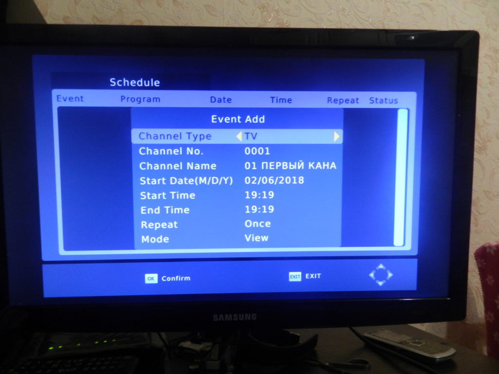 Это добавление расписания на запись передачи. Жмем снова «OK» и задание будет добавлено в очередь. Самое интересное заключается в том, что мы спокойно можем отключить приставку, она сама включится и запишет передачу. Единственное что необходимо для успешного выполнения этой задачи — это наличие флешки в USB-разъеме приставки.