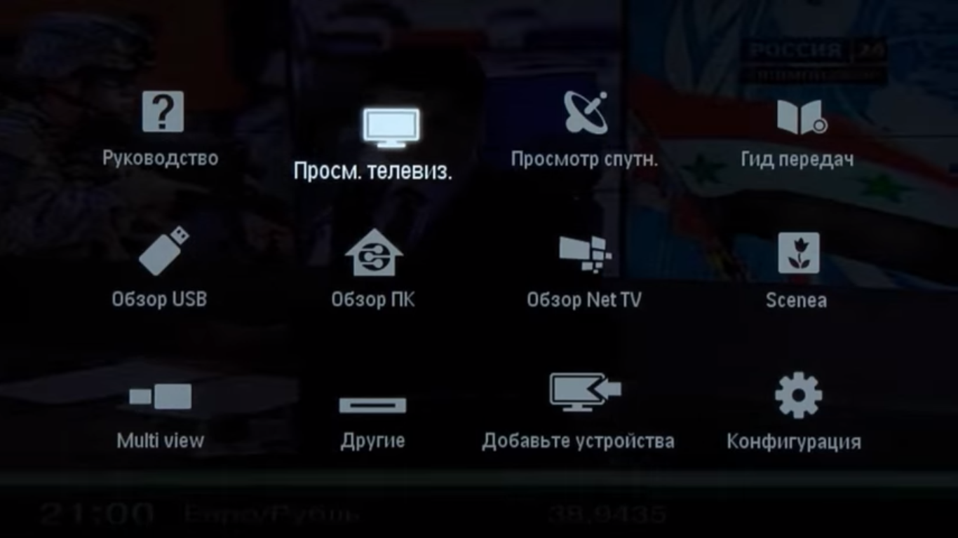 - После этого на экране мы увидим иконки основных разделов Меню. Нам необходимо будет выбрать иконку с надписью “Конфигурация”.