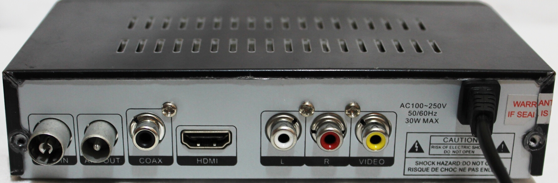 - Подключаем кабель питания приставки в розетку, а другую сторону вставляем в соответствующий разъем на корпусе.