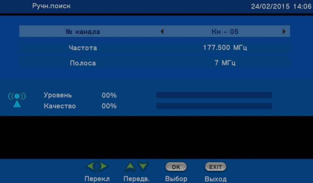 | Ручная | 1. Взять ПДУ, нажать кнопку «Settings». 2. Открыть «Каналы», далее — «Ручная настройка».