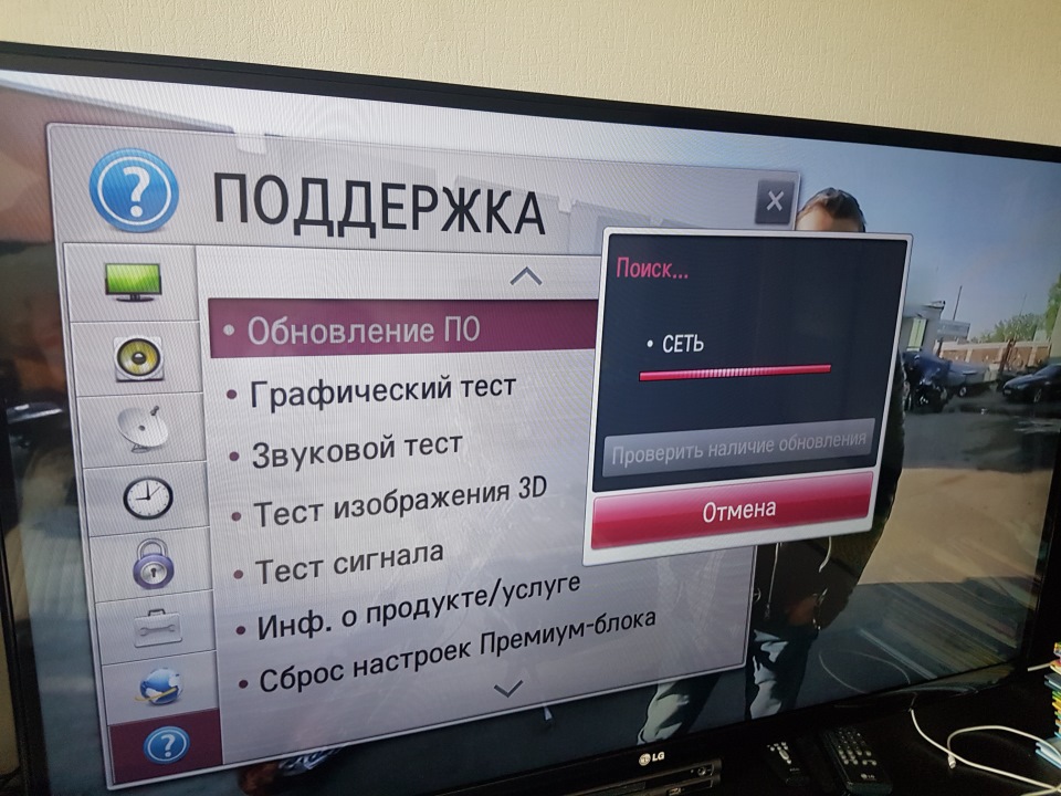 - на телевизорах LG: «Настройка» -> «Поддержка» -> «Данные о продукте».