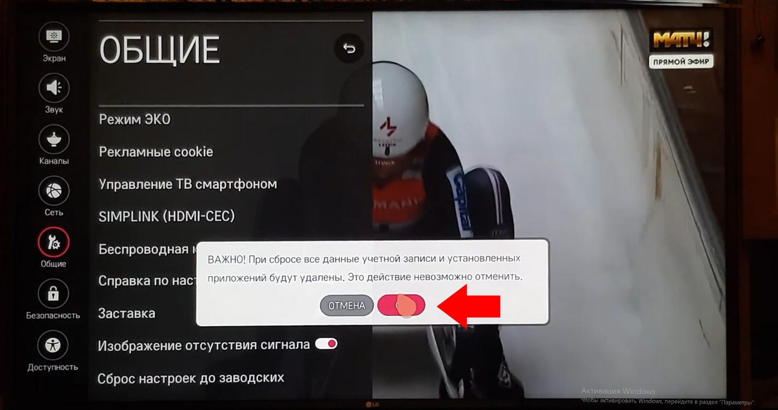 - На пульте нажать значок «домик». Там переходите в раздел «настройки» и оттуда в «общее».