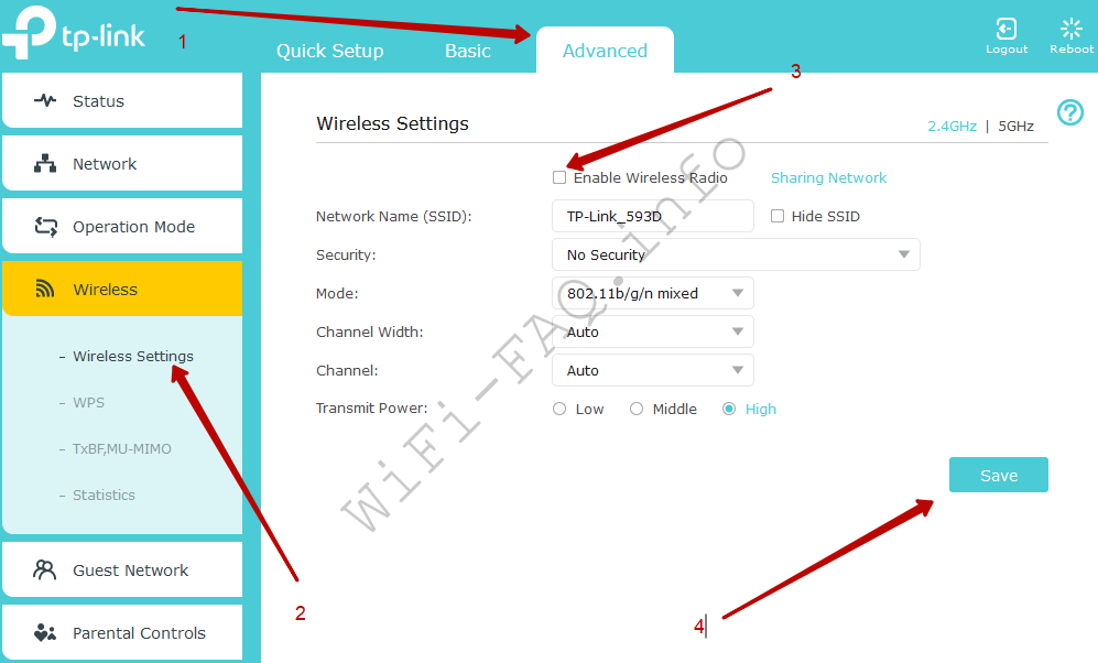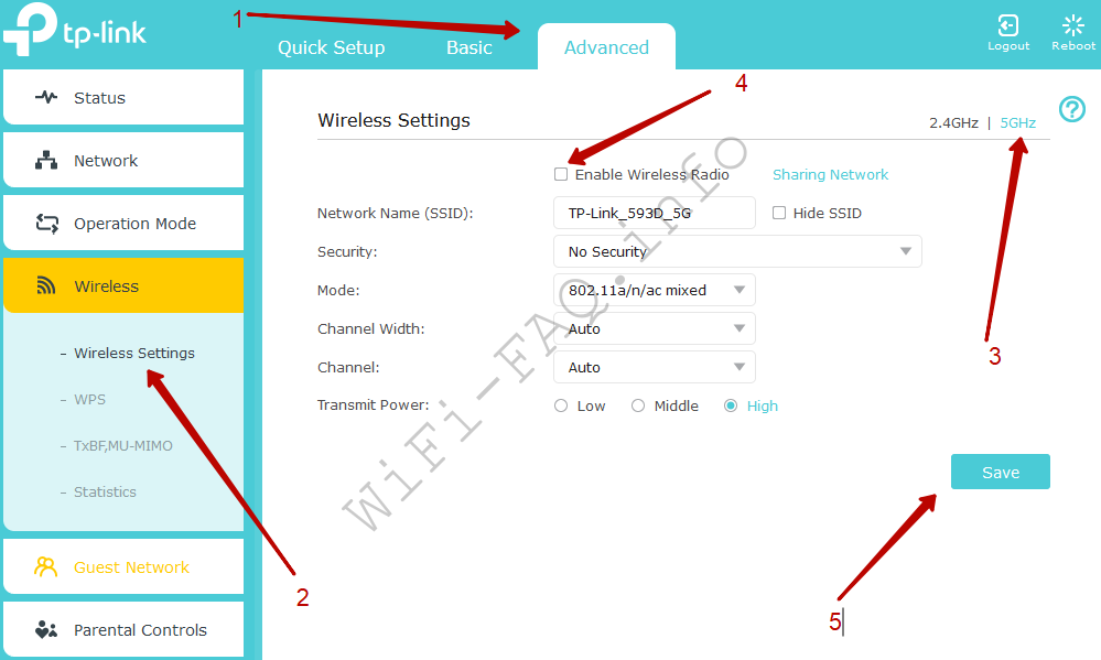Для включения раздачи прямо в панели управления маршрутизатора, перейдите в раздел расширенных настроек. Далее зайдите в меню беспроводного соединения, выберите частоту, для которой хотите включить раздачу, затем поставьте галочку в пункт “Включить раздачу”. В зависимости от модели и языка интерфейса пункт может иметь разные названия, но смысл их одинаковый. Не забудьте сохраниться.