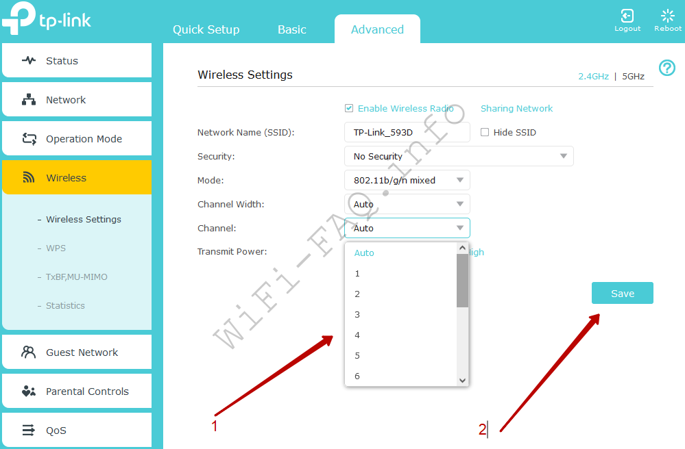 Когда телевизор LG не видит интернет, попробуйте такой способ, как смена частоты маршрутизатора. Сначала удостоверьтесь в том, что техника поддерживает стандарт Wi-Fi 802.11ac. Если с этим полный порядок, вручную измените канал раздачи интернета на маршрутизаторе: