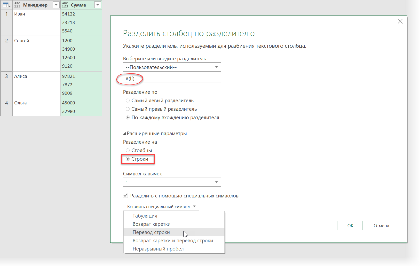 Бывают ситуации, когда пользователю необходимо осуществить деление многострочной текстовой информации не на колонки, а на строчки.