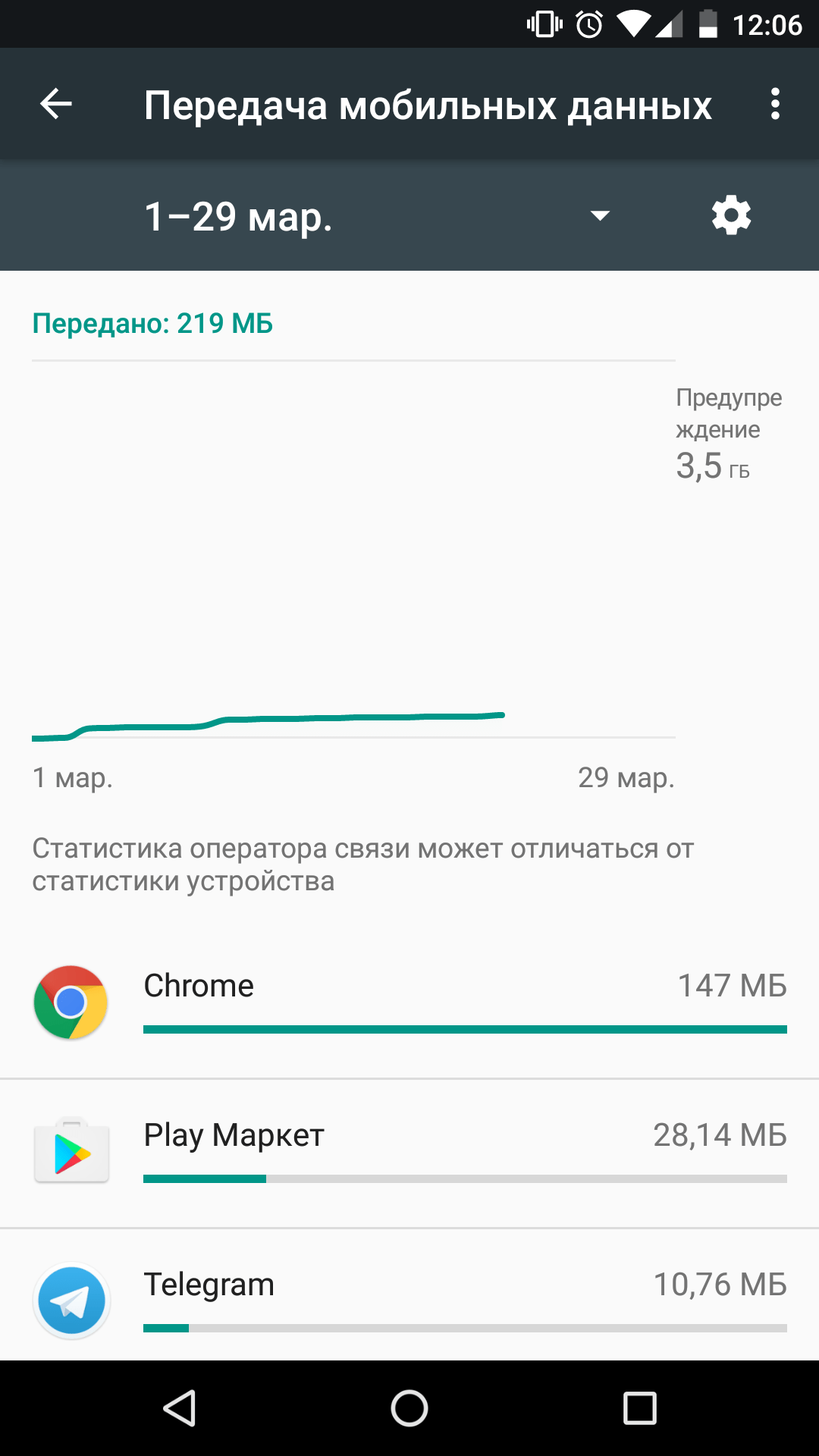 Чтобы зайти в раздел статистики и узнать, как сэкономить трафик на «Андроиде», нужно пройти такой путь: «Настройки», затем «Передача данных», после чего войти в папку «Название оператора». Здесь можно смотреть статистику за необходимый период, который легко выставить самому. Не допустить перерасхода поможет функция настройки лимита, что особенно удобно при фиксированном количестве мегабайт в пакете, после чего дополнительный объем оплачивается по значительно более высоким ценам.