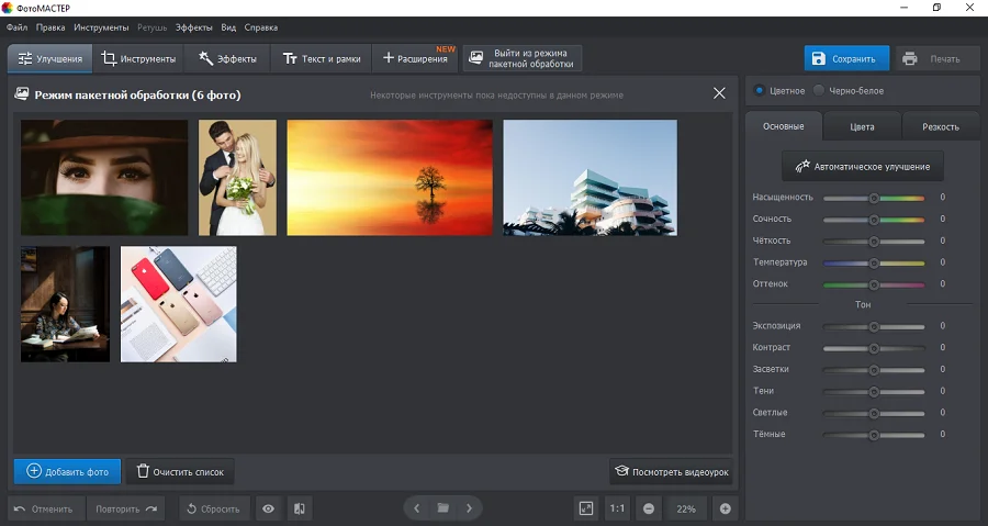 1. Запустите программу. В панели инструментов нажмите кнопку «Пакетная обработка».