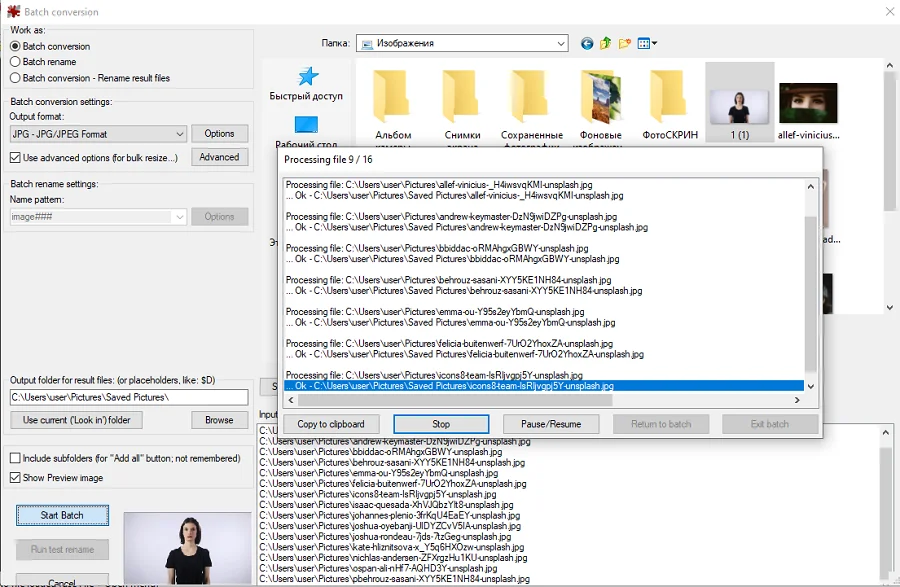 5. Выберите папку, куда будут записаны сжатые снимки. Затем щелкните по «Старт». После завершения операции новые файлы будут записаны в указанную папку.