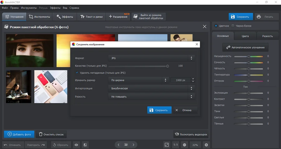 Добавьте картинки в пакетный обработчикИзменение параметров