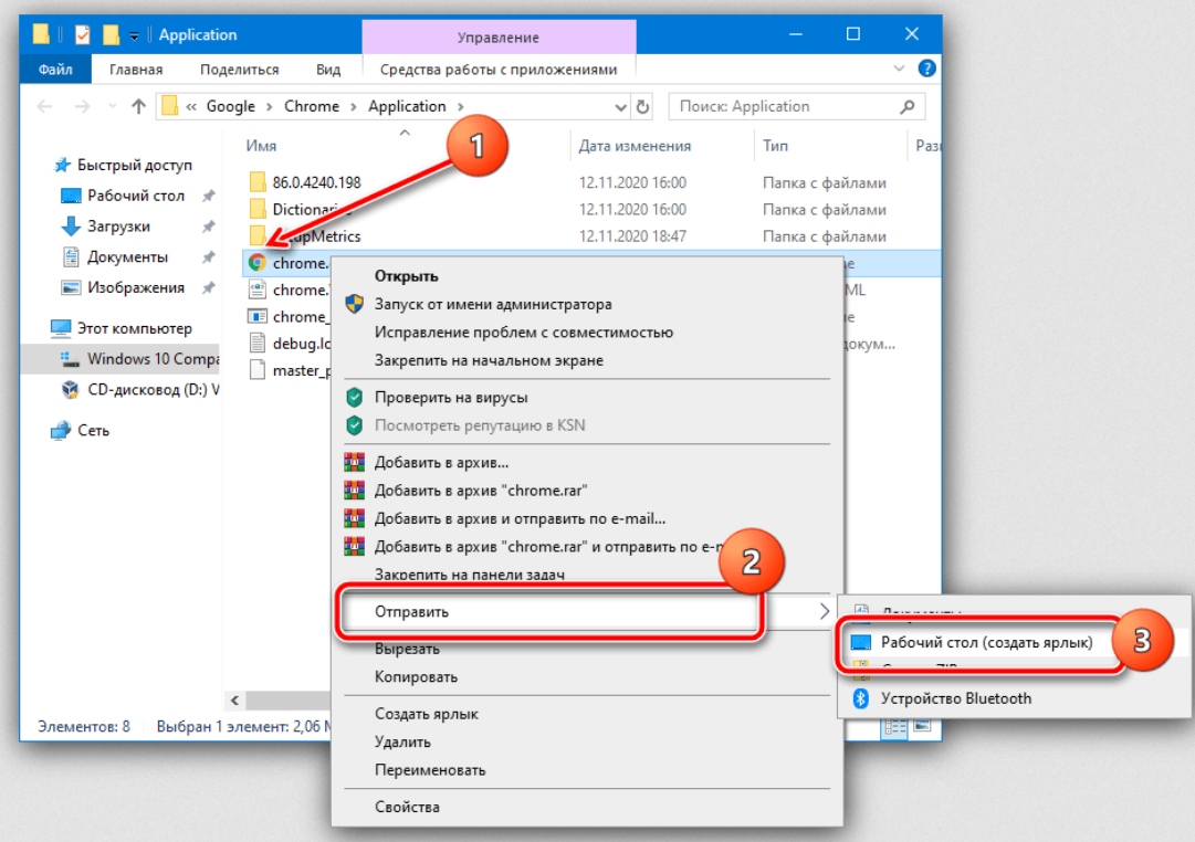 - Сворачиваем окна, находим ярлык браузера Chrome и дублируем его (выбираем из контекстного меню копировать, затем – вставить).