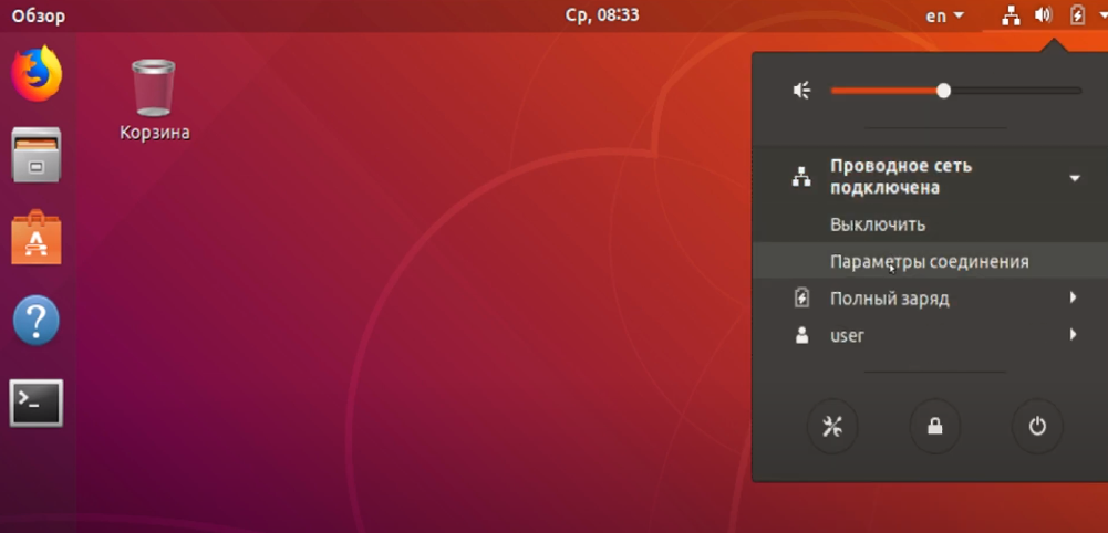 Сменить DNS-адрес в Linux системе можно двумя способами. К примеру, вы можете сделать это через интерфейс сетевых подключений: кликайте мышкой на значок сети, выбирайте подключенную сеть и открывайте параметры соединения.