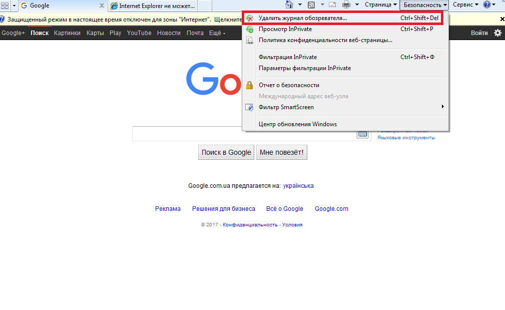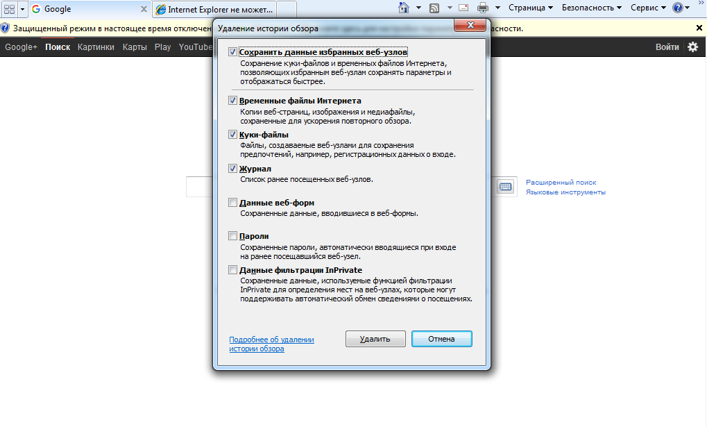 Открывшаяся на экране вкладка обеспечивает те же возможности, что и меню очистки в любом более современном браузере.