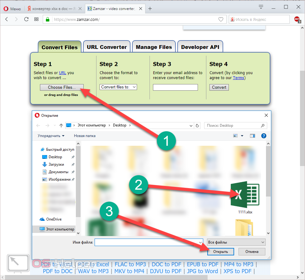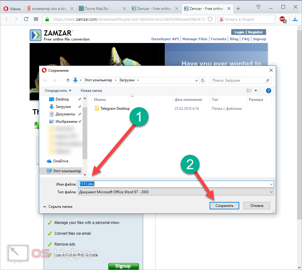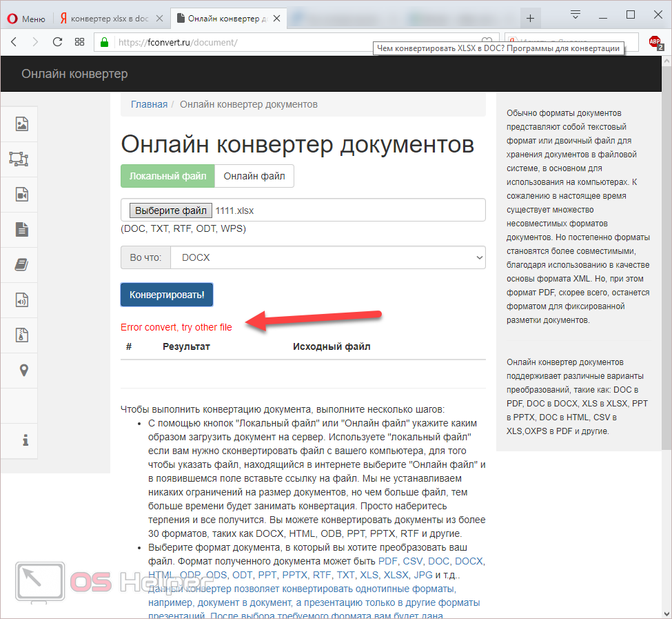 Преобразование Excel в Word онлайн проходит в следующем порядке: