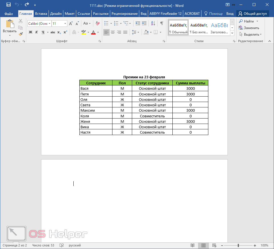 Откройте скачанный файл в программе Word, посмотрите на результат преобразования формата и внешний вид таблицы.