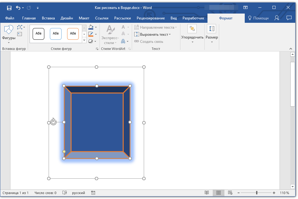 Поворот фигуры выполняется точно так же, как и поворот рисунка — на шаблонное, строго заданное или произвольное значение. То есть, можно выбрать стандартный угол поворота, указать свой или просто повернуть фигуру, потянув за круговую стрелку, расположенную непосредственно над ней.