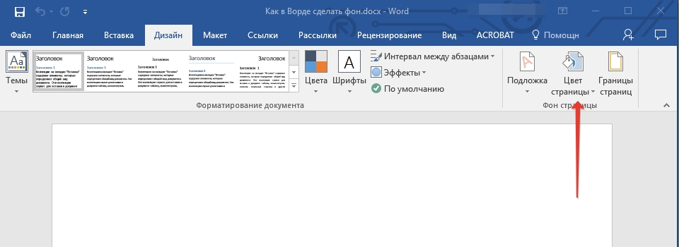 - Перейдите в «Дизайн» → «Фон страницы» → «Цвет страницы»;