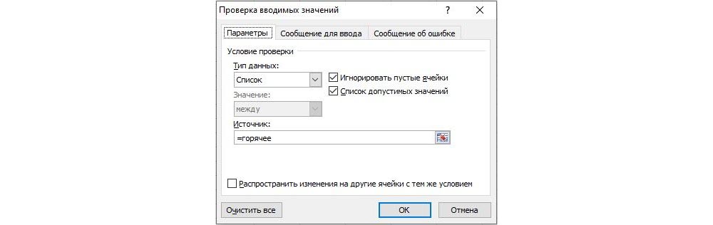 Если в нижние строки вписать новые значения, они тут же отобразятся в готовом перечне.