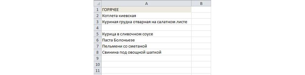 - Чтобы добавить еще одно значение, нужно воспользоваться вставкой пустой строки. Выделить ячейку с любым наименованием, на «Главной» клацнуть по «Вставить» — «Вставить строки на лист». На листе отобразится пустая ячейка, вписать туда название.