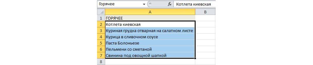- Выделить имеющийся перечень наименований и присвоить ему имя в левой строке формул.