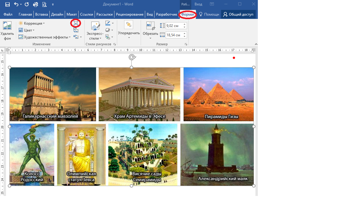 - Откройте вкладку «Формат», перейдите в раздел «Работа с рисунками».