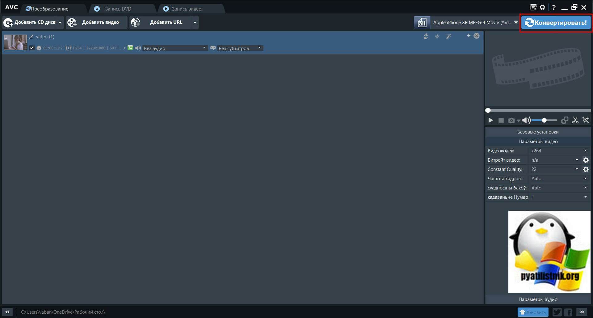 Посмотрите видео с примером по настройке и работе в программе конвертации:
