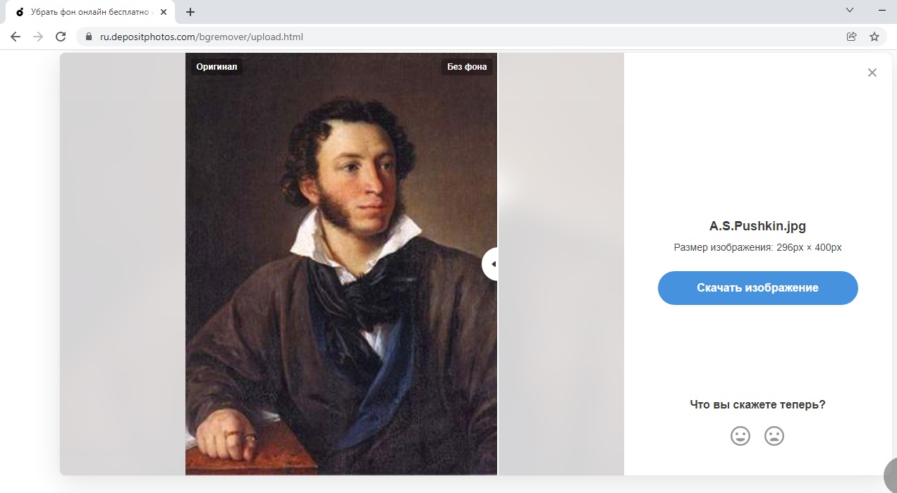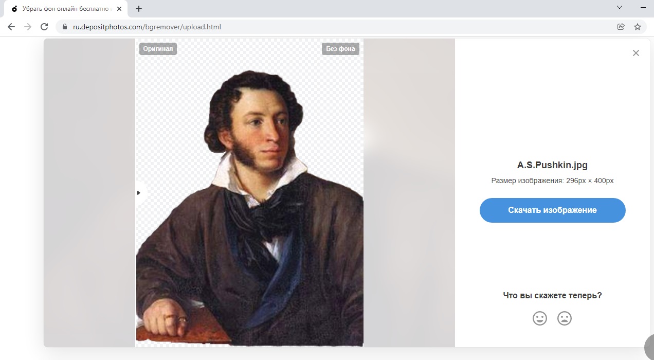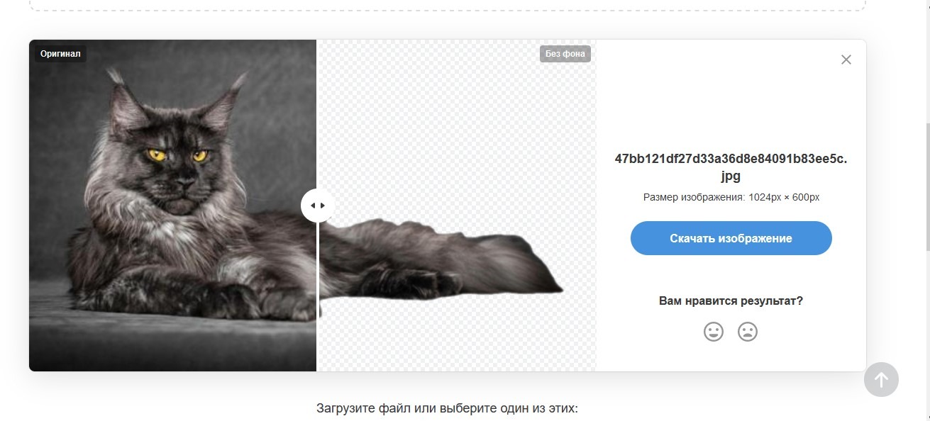 После перезагрузки страницы вы сразу увидите результат с удаленным фоном и сможете скачать его на компьютер.