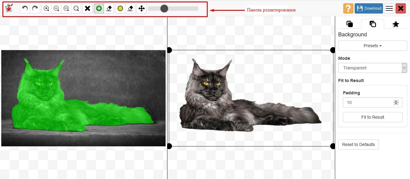 PhotoScissors Online – бесплатное веб-приложение для вырезания фона с рисунка. После загрузки изображения автоматически откроется панель редактирования. Встроенные инструменты помогут максимально качественно выделить границы объекта. Недостатки PhotoScissors Online – сложный для новичков интерфейс, отсутствие поддержки русского языка.