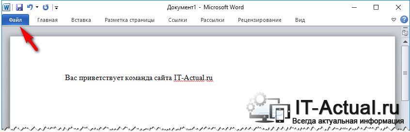 1) В верхнем левом углу окна Microsoft Word нажмите на кнопку Файл (в Word 2007 и более ранней эта кнопка называется MS Office).
