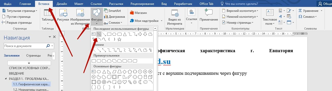 - На вкладке Вставка нажмите кнопку фигуры.