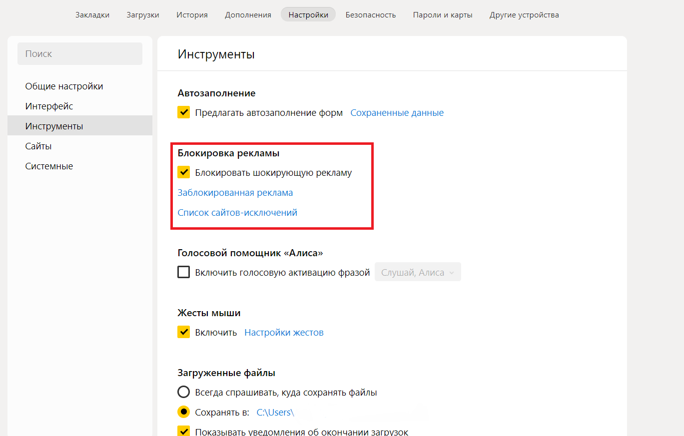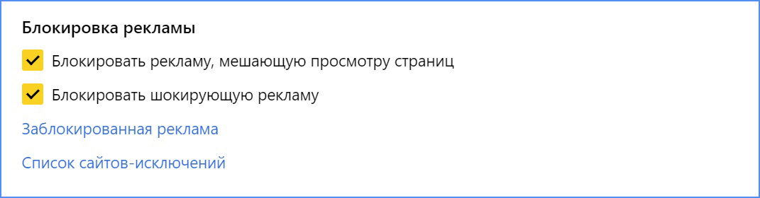 3.1 Блокировка рекламы в Яндекс.Браузер