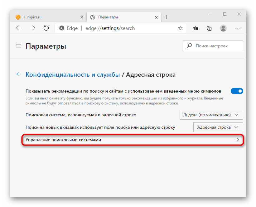 - Перейдите в раздел «Управление поисковыми системами» (виден на изображении выше).