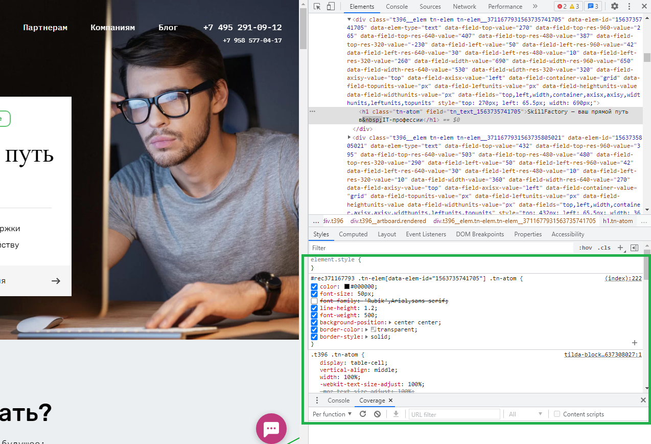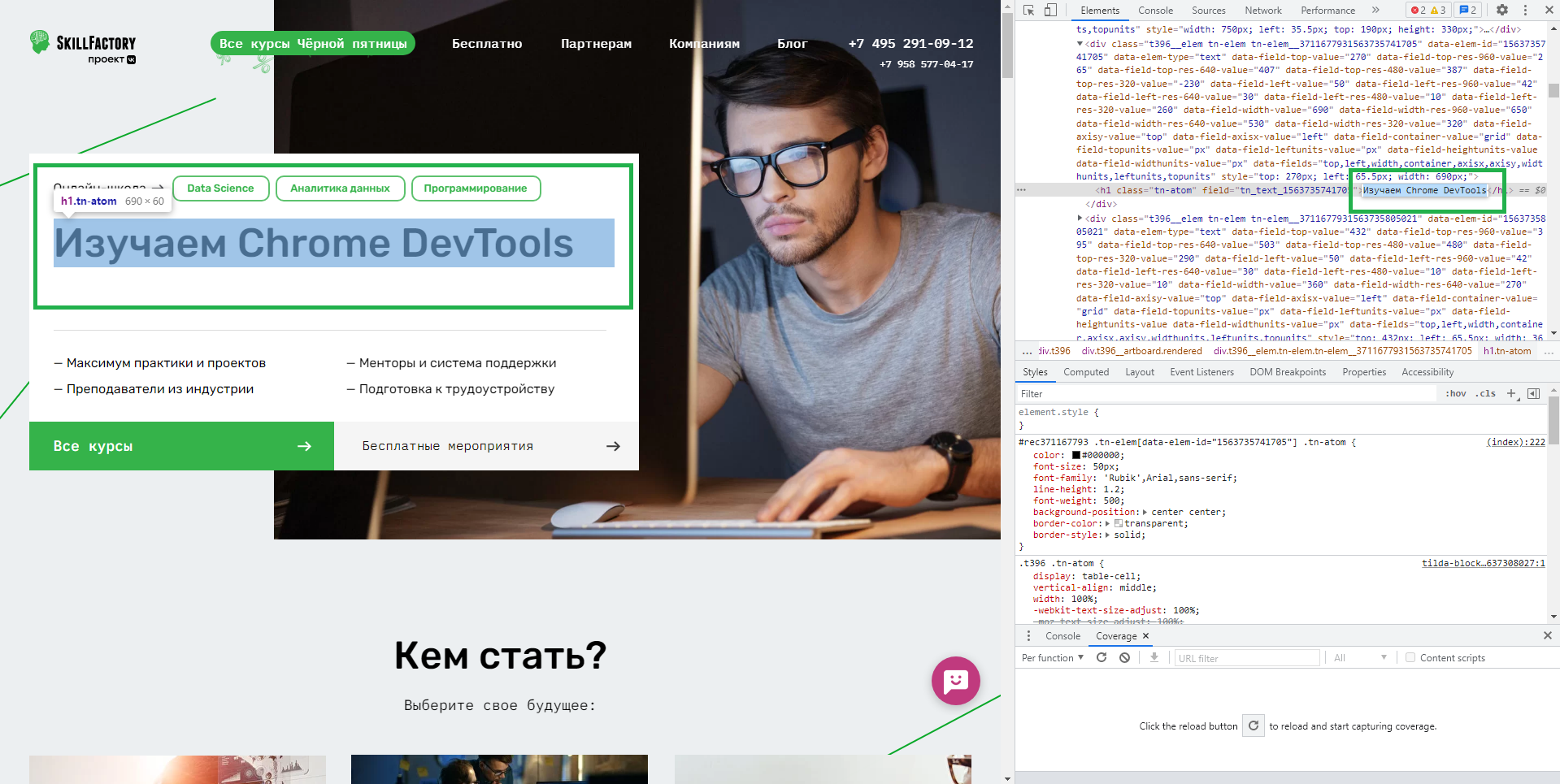 В этой видео-инструкции подробно рассказано и показано, как работать с инструментами разработчика: