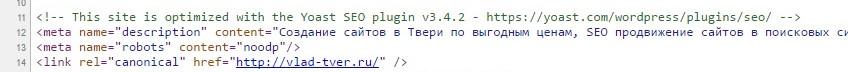 Данный сайт оптимизируется с помощью сео-плагина Yoast SEO. Это видно из этого закомментированного участка кода: