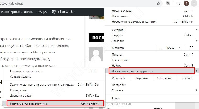 - в разделе дополнительных инструментов войдите в Инструменты разработчика.