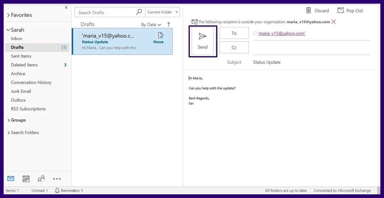 Шаг 6: Вернитесь в «Черновики», откройте письмо и выберите «Отправить».
