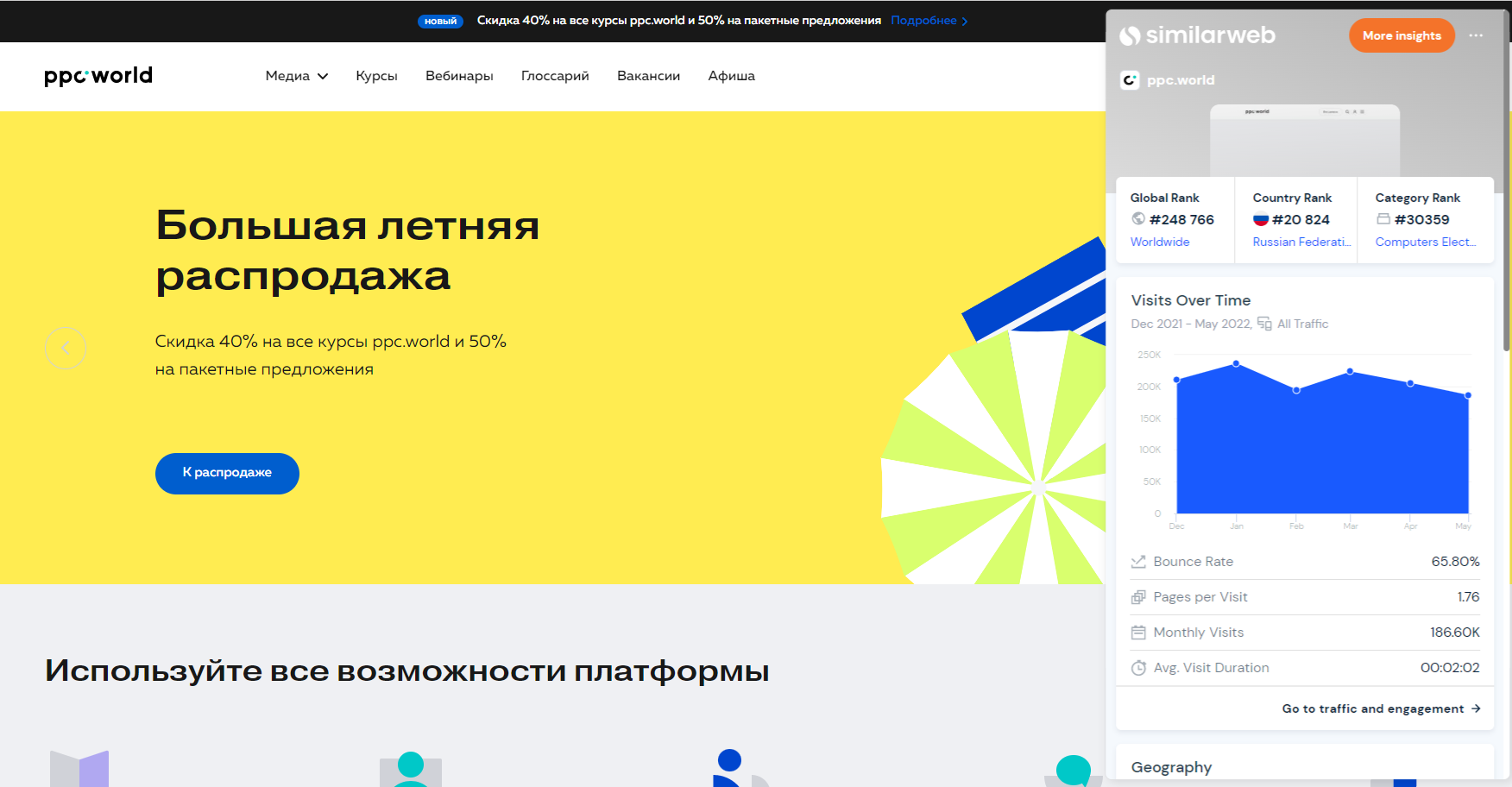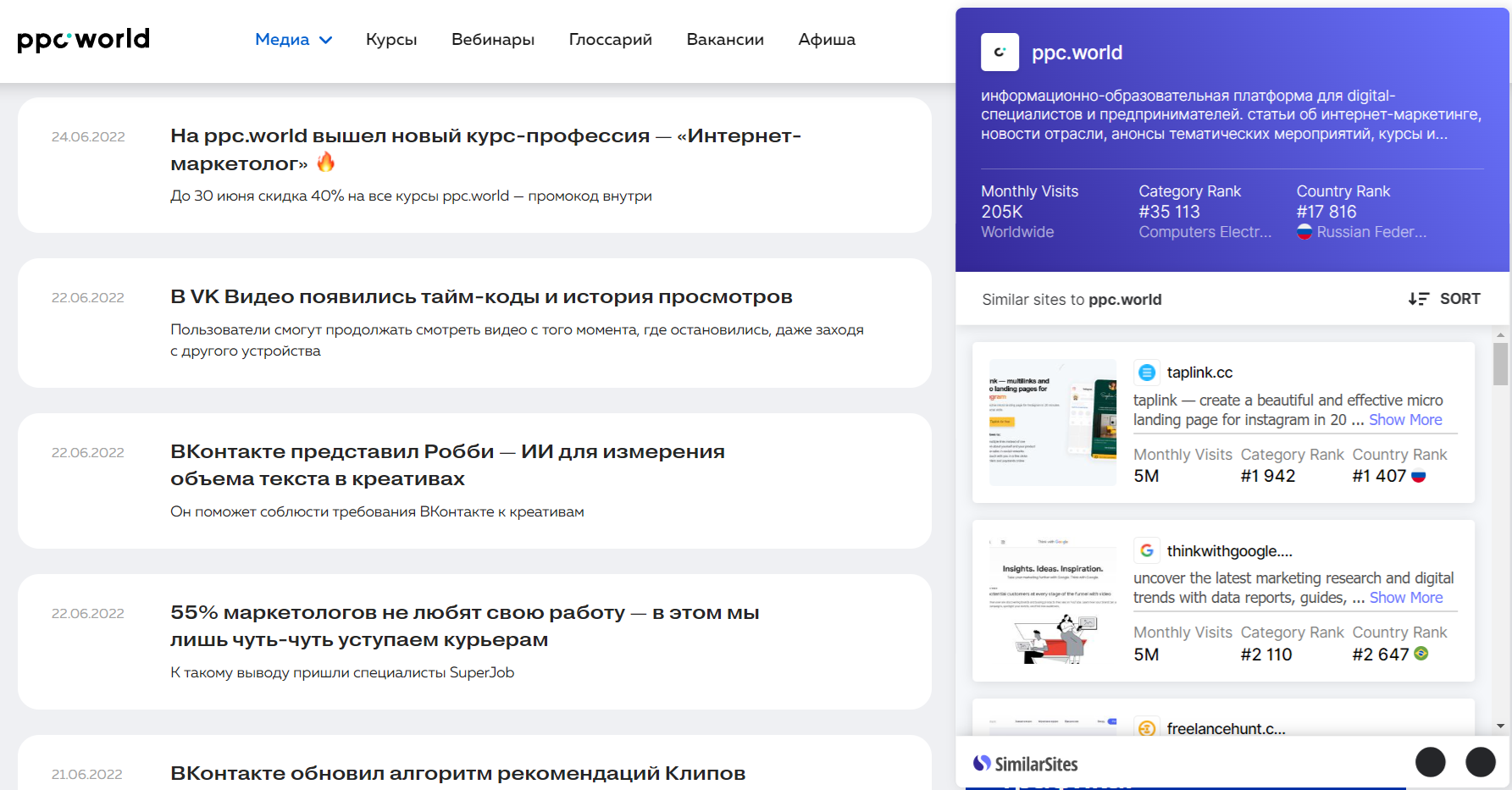 Главная задача таких расширений — показать вам данные об активности на страницах конкурентов. С этим справятся Popsters Extension, SimilarWeb и Pepper Panel. Сюда же мы добавили обзор расширения для поиска конкурентов — SimilarSites.