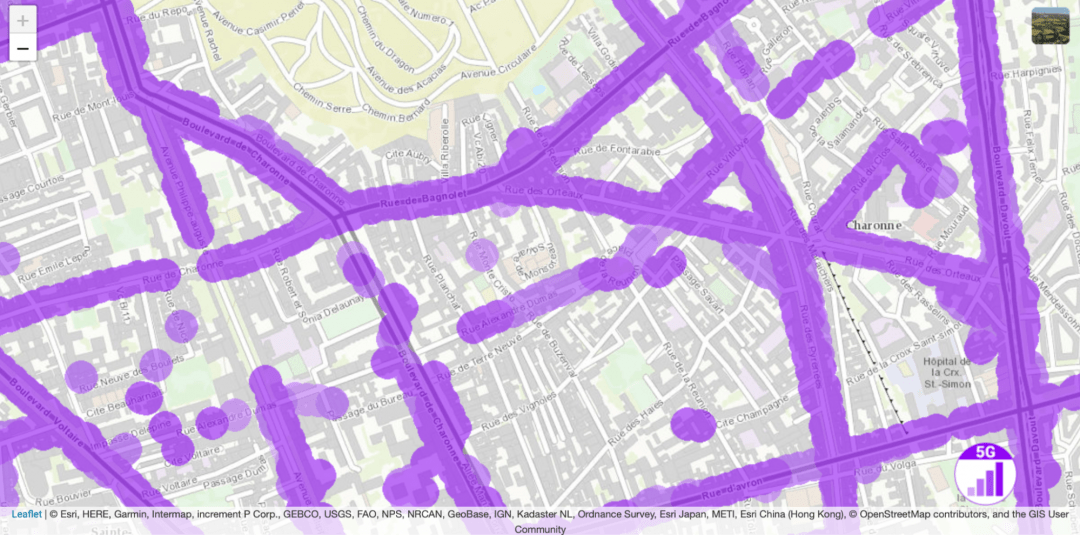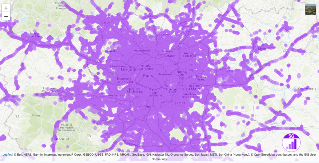 Карта покрытия 5G в Париже. Кажется, что весь город уже пользуется 5G