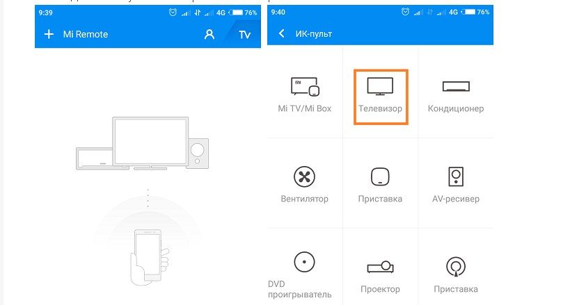 Управление техникой с помощью пульта приложения Mi Remote