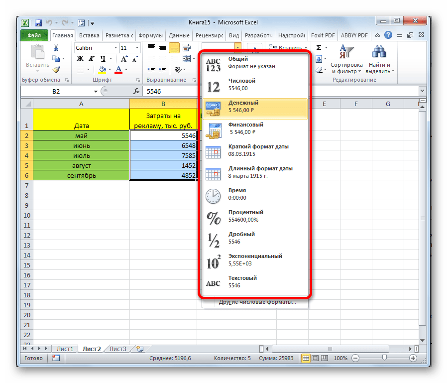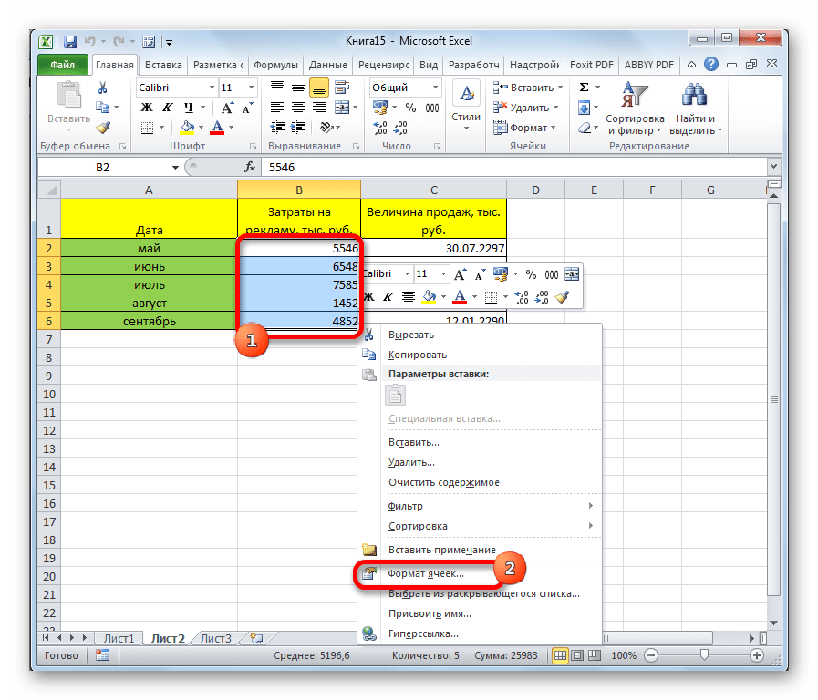 Самый популярный способ изменения форматов диапазона данных – это использование контекстного меню.