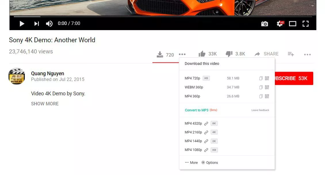 После завершения установки откройте любое видео на YouTube, и вы сможете найти кнопку «Скачать MP3» прямо над кнопкой «Подписаться» на видео. Нажмите эту кнопку, чтобы сразу же приступить к загрузке видео YouTube в формате MP3.