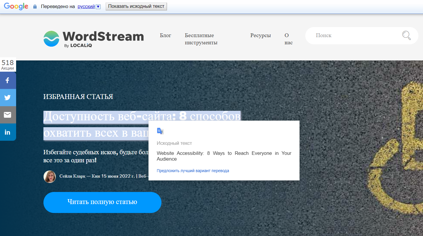 Читать иностранные блоги и статьи на языке оригинала — это действительно круто, но если вы знаете язык на уровне ниже B2, то не быстро. Когда нужно пробежаться по тексту глазами, чтобы найти нужную информацию, проще подключить переводчик — так дело пойдет быстрее. По сути, это расширение — встроенный переводчик Google.