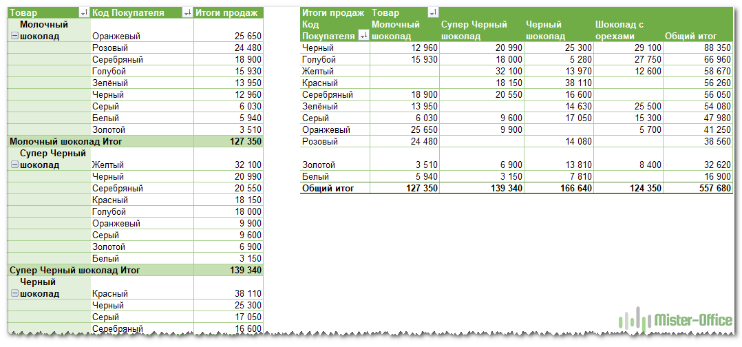 Этот скриншот демонстрирует лишь несколько из множества возможных вариантов анализа продаж. И далее мы рассмотрим примеры построения сводных таблиц в Excel 2020, 2013, 2010 и 2007.