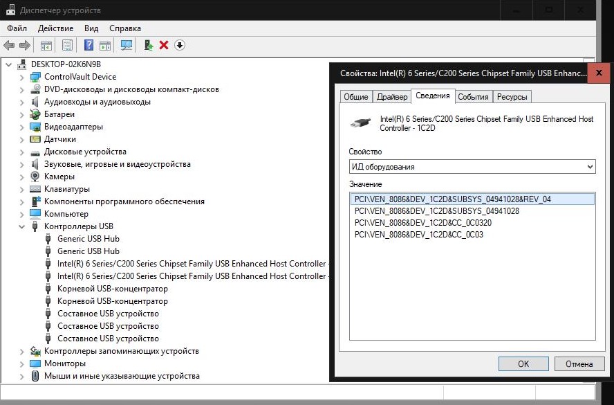 - Переходим на вкладку «Сведения», из списка выбираем «ИД оборудования» и копируем содержимое пункта. А именно нам нужно VEN и DEV. Строка должна выглядеть, например, вот так VEN_1102&DEV_0011.