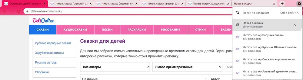 С появившейся поисковой строки можно начинать вводить имя любой открытой вкладки, и список сузится, чтобы показать только совпадающие результаты. Как только в списке будет нужная вкладка, следует нажать Enter, чтобы перейти прямо к ней, или же закрыть ее, кликнув по значку «Х» рядом с названием.