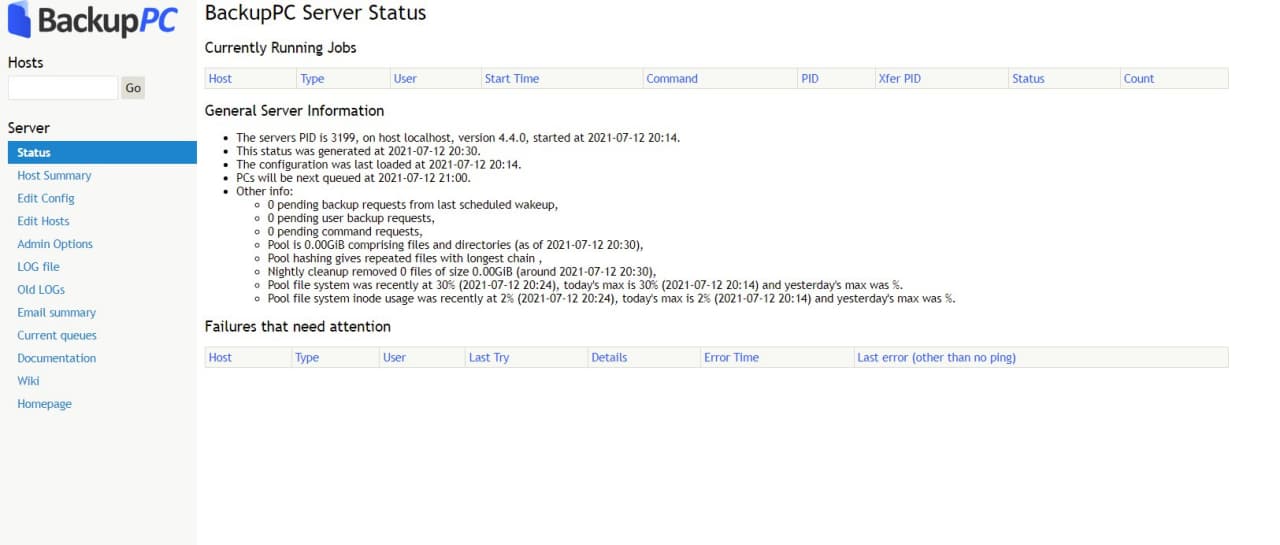 Вместе с backuppc прилетит apache с готовым конфигом. Надо будет только юзера добавить для авторизации. Подробная инструкция по установке есть тут. Я по ней поставил. А дальше полез в документацию и немного прифигел. Думал это небольшая утилитка, но по факту BackupPC достаточно крупная и зрелая система бэкапа, с которой надо разбираться.