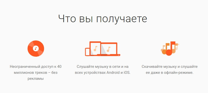 Независимо от выбранного варианта Google Play Музыка дарит бесплатную подписку YouTube Music Premium, благодаря которой можно воспроизводить треки в режиме онлайн или офлайн без просмотра рекламы.